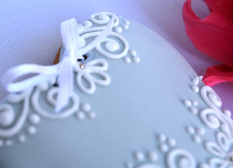 Tischkärtchen, Gastgeschenk Herz mit Schleife 8x8cm.